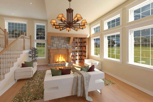 No.11 Craftsman house plan fireplace & stair feature