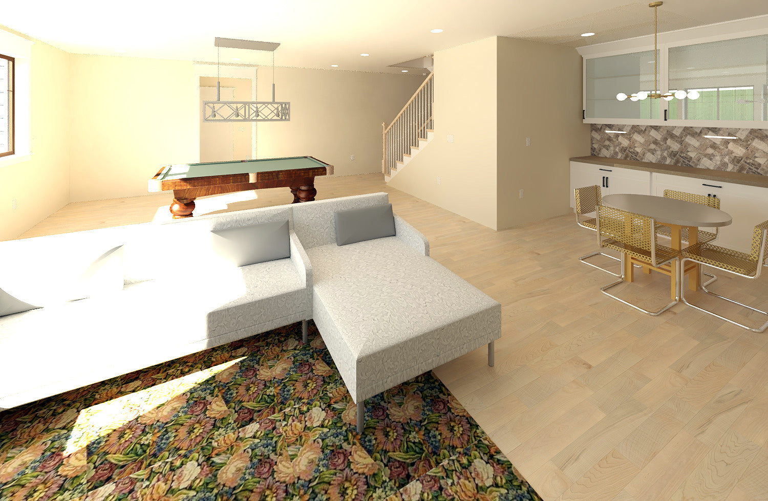 - Theater and large family room in basement