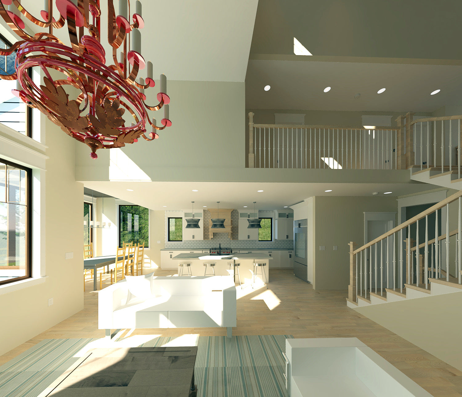 - Vaulted living room with dormers