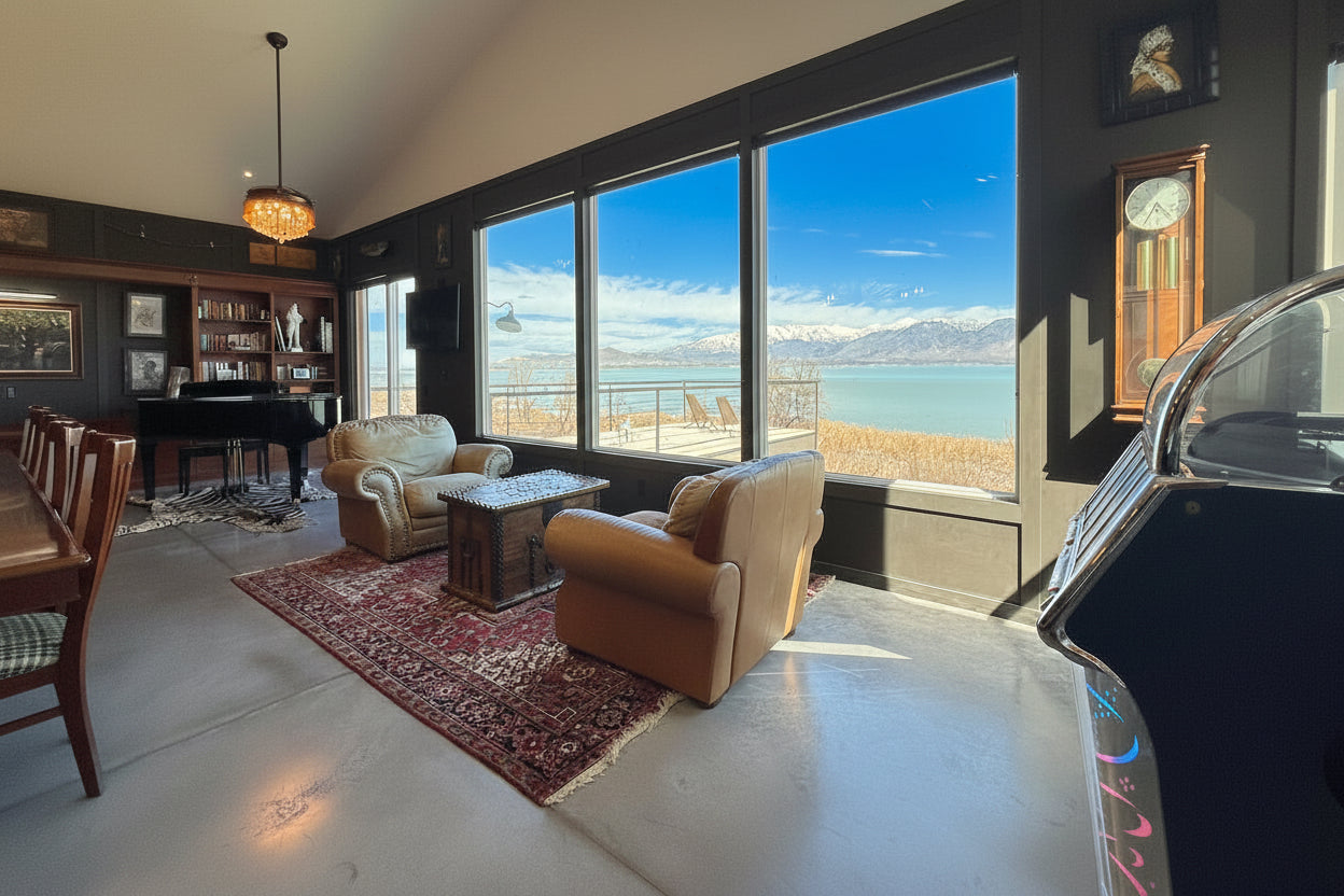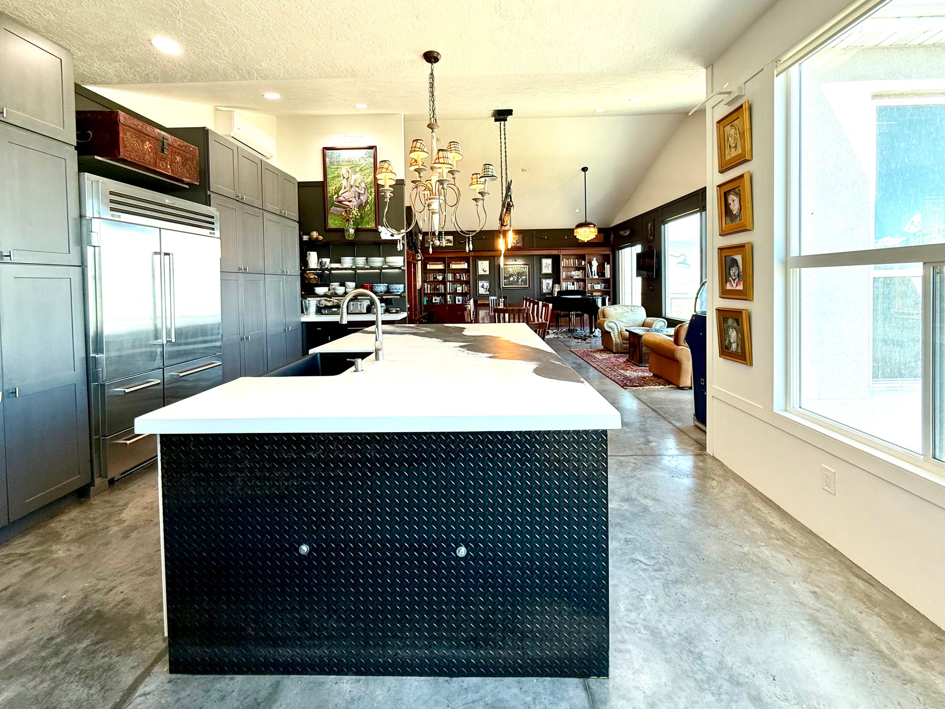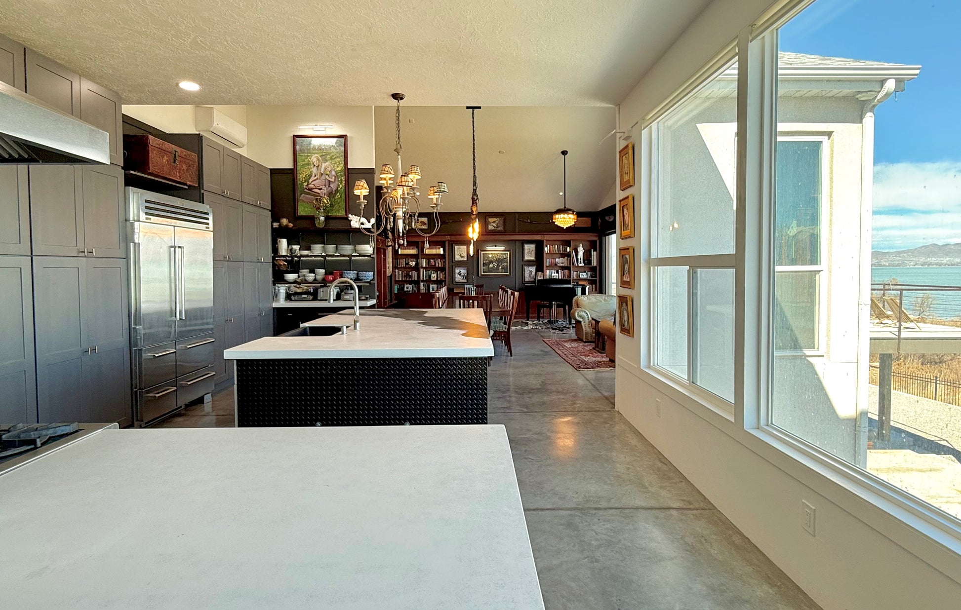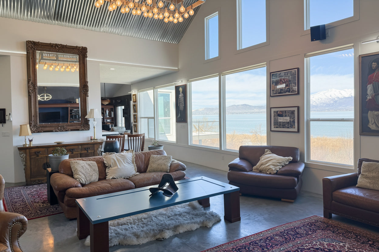 - Large great room with two story vault and large windows