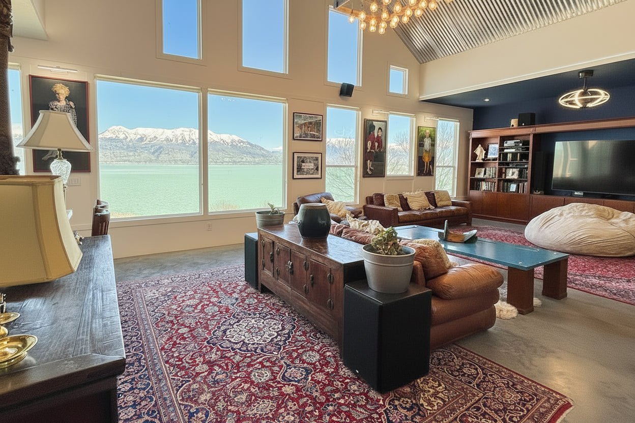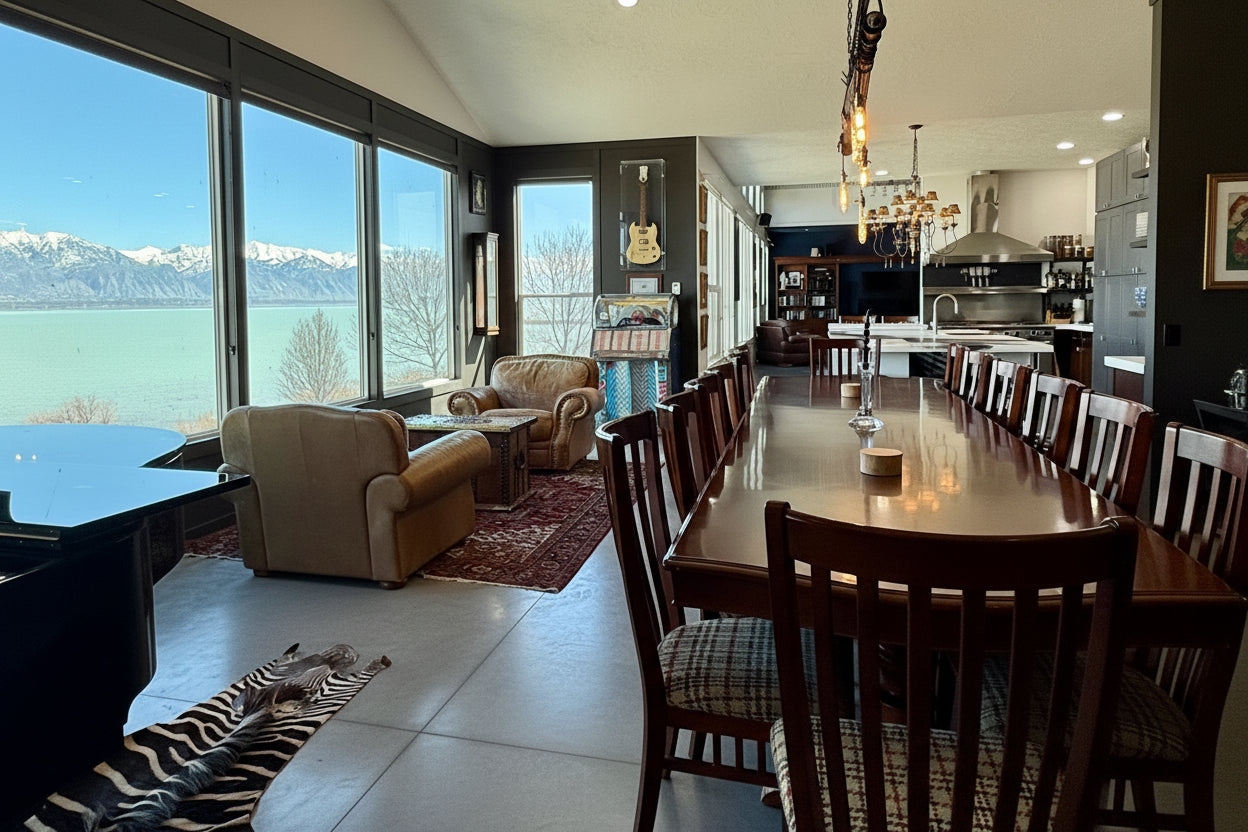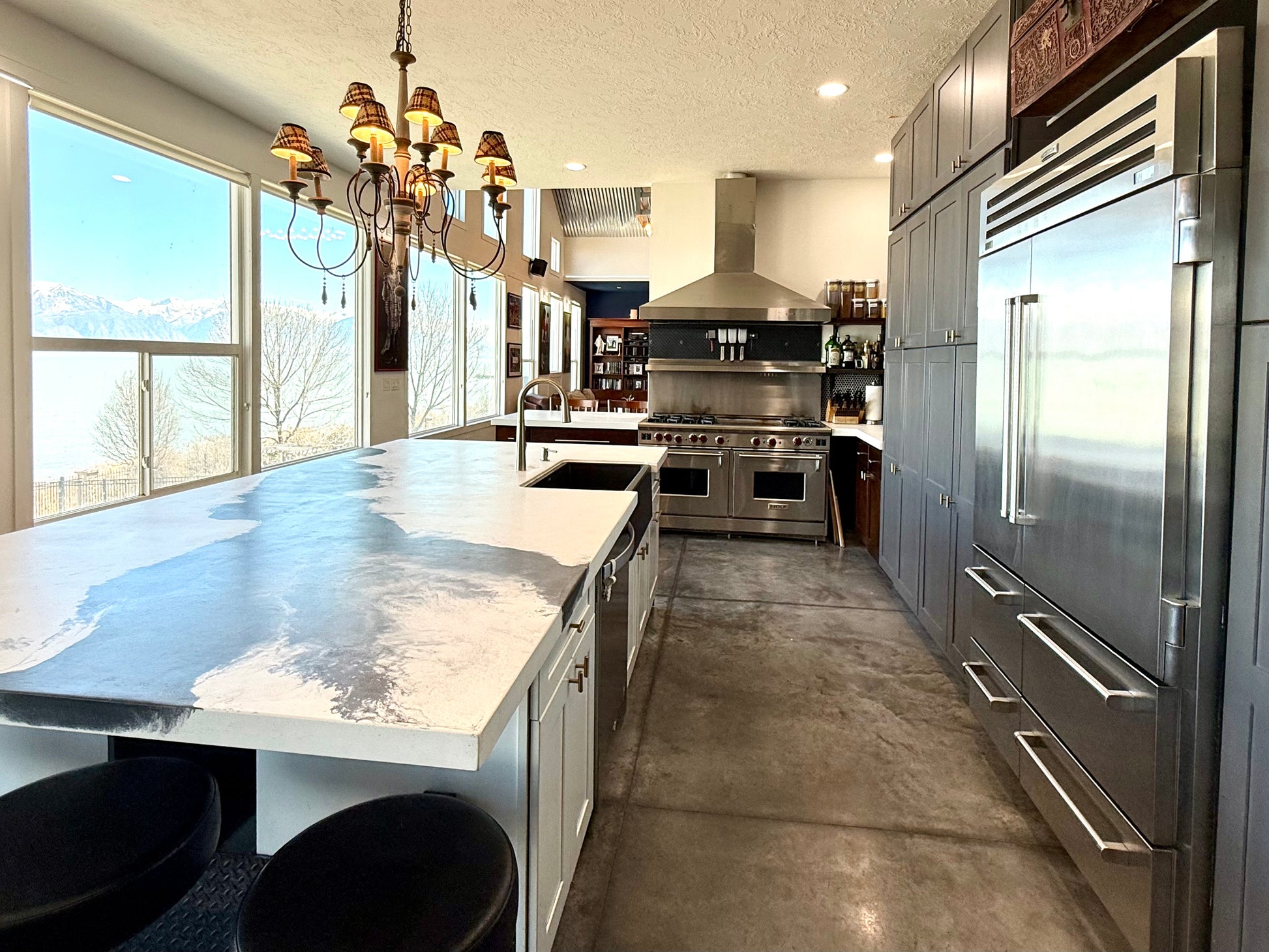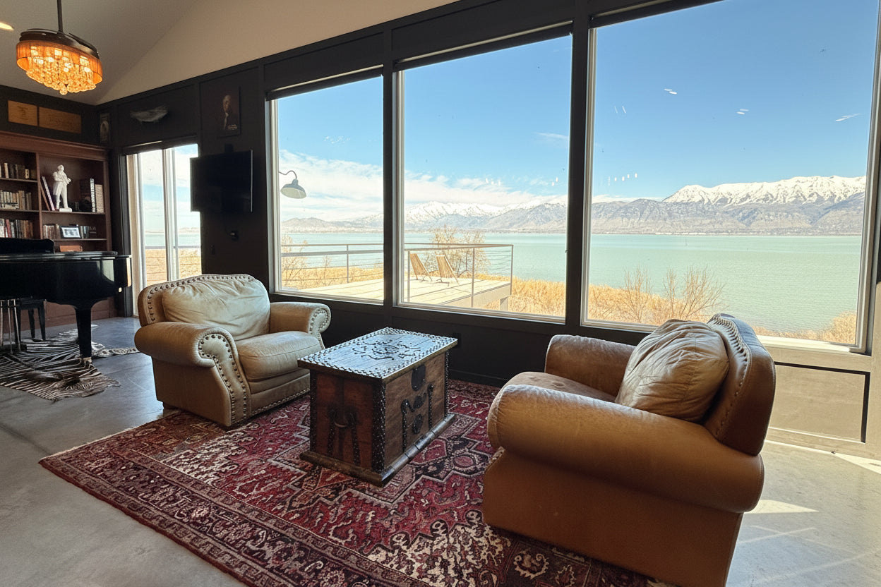 - Large great room with two story vault and large windows